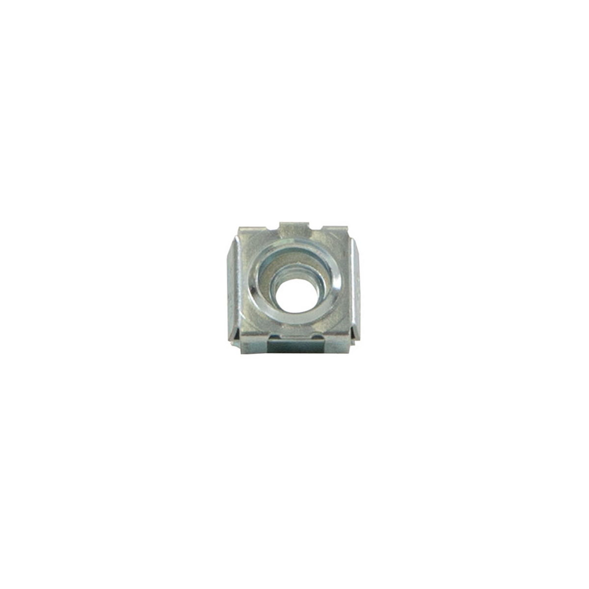 10-32 Server Rack Cage Nuts - Snap-In, Clear Zinc Plated Steel (50/100/2500 Pack)