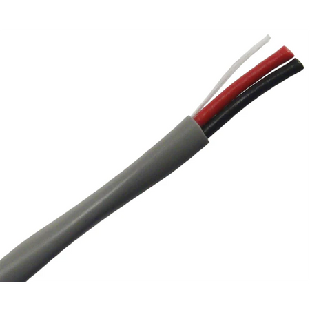 Heavy-duty unshielded riser-rated 2-conductor security alarm cable engineered for long-run installations in clean electrical environments. This USA-made cable features two 18-gauge stranded bare copper conductors with 7 strands each, housed in a CMR-rated gray jacket. Delivering the longest possible cable runs without the premium cost of shielding, this cable is the optimal choice for professional installations requiring heavy-duty 18 AWG performance in environments where EMI protection is not required.
