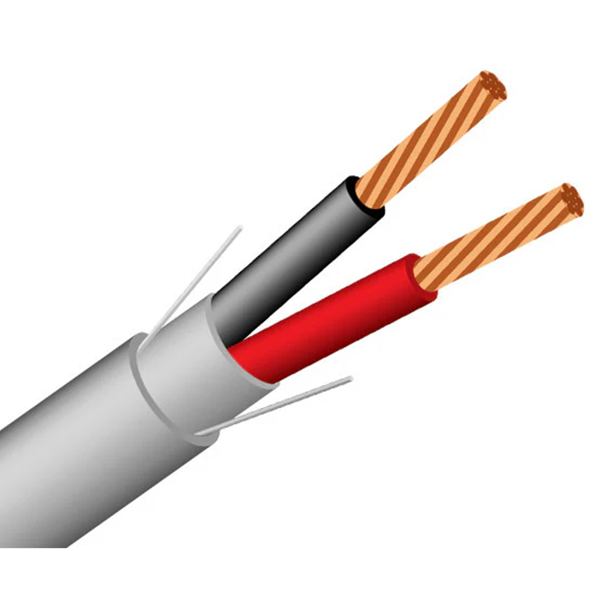 Premium shielded riser-rated 2-conductor security alarm cable engineered for reliable installations requiring EMI protection and fire safety compliance. This USA-made cable features two 20-gauge stranded bare copper conductors with 7 strands each, protected by aluminum foil shielding and housed in a CMR-rated gray jacket. The optimal balance between standard 22 AWG and heavy-duty 18 AWG, 20 AWG delivers enhanced performance for extended cable runs at a competitive price point. Designed for security systems, intercoms, audio applications, and power-limited controls where shielding is essential.