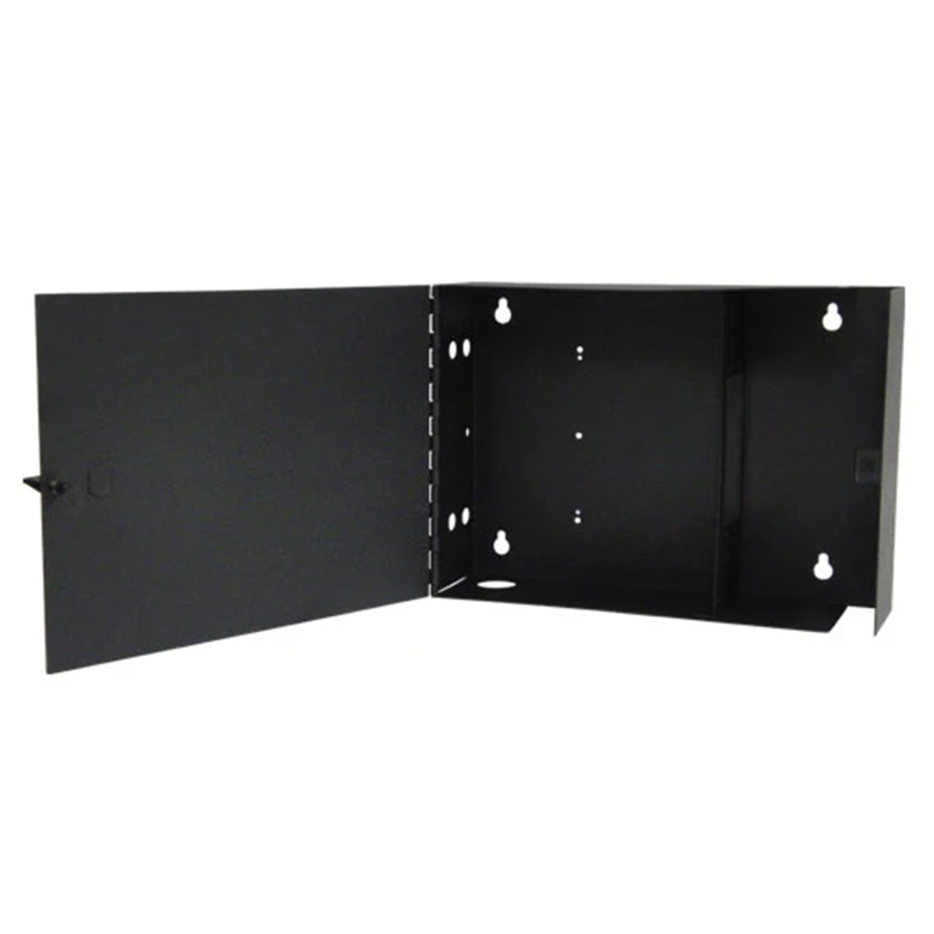 Construction-grade compact wall-mounted fiber patch panel engineered for mid-size installations requiring streamlined access with internal compartment separation. This professional single-door design features internal network/distribution compartment separation, 2 adapter panel positions (24-port capacity), and 2 splice trays (24-splice capacity), providing complete fiber management in an ultra-compact streamlined access configuration. With top and bottom cable entry, optional keyed lock capability, custom logo option, and Telcordia-compliant design, this lightweight durable steel enclosure delivers professional fiber distribution for telecommunications rooms, equipment closets, and installations requiring maximum capacity in minimal space with efficient single-door access.