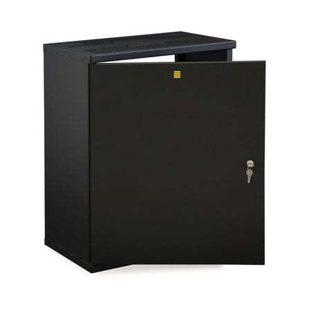 - Solid, Secure Enclosure: This enclosure has a welded frame with solid sides and a locking door to safeguard your valuable networking equipment.