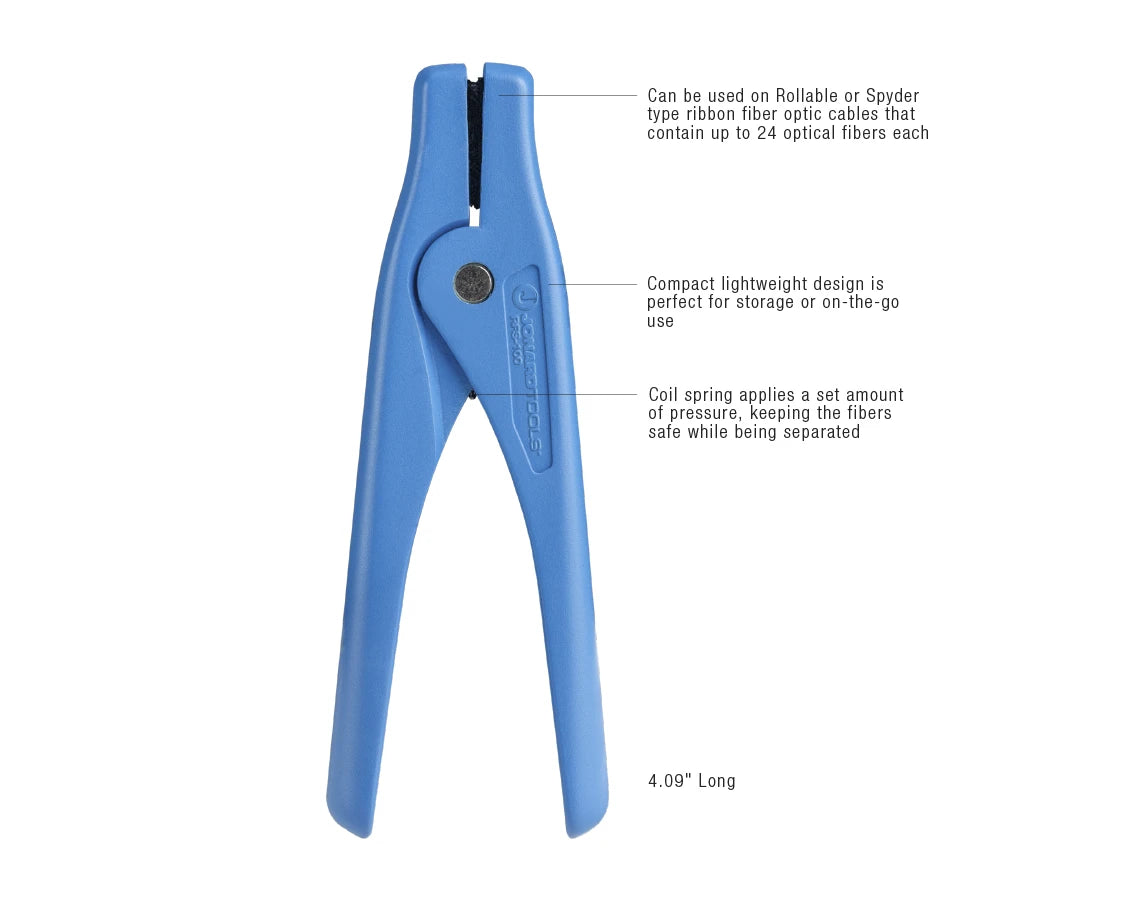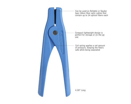 Efficiently separate individual fibers in rollable or Spyder ribbon cables (2–24 fibers) without nicking or stressing them. The coil-spring mechanism applies consistent pressure, fanning out the ribbon matrix smoothly. Its compact, lightweight design slips easily into any technician’s pouch for on-the-go fiber prep.